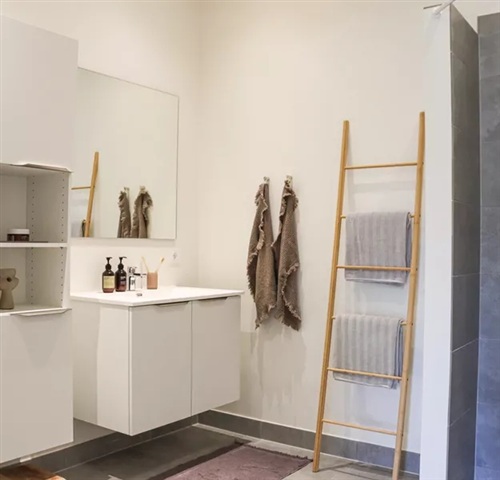 The property features one main bedroom equipped with built-in wardrobes, offering sufficient room for a double bed and additional furniture. Two further rooms are available and can be adapted for use as children's bedrooms, a home office, or guest rooms. The bathroom is designed with simplicity and functionality in mind, containing a shower niche, toilet, and washbasin, with materials chosen to harmonize with the overall style of the home.