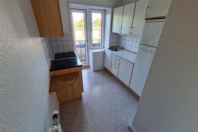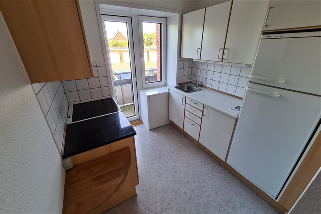 The apartment features a bright and attractive interior, showcasing lacquered beech parquet flooring throughout the hallway, living room, and bedroom. The spacious living room, filled with natural light, opens onto a small balcony. The kitchen is well-lit and equipped with white cabinetry. The bathroom includes white tiled walls and underfloor heating. Pets are not permitted.