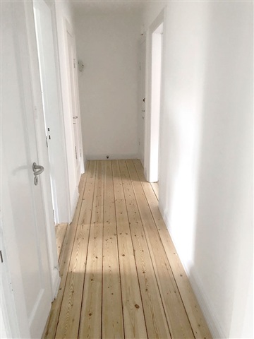 Large, lovely and spacious living room with lots of wall space, planed and varnished wooden floors, stucco and rosette by the ceiling lamp socket. The living room has a large window that gives the room a fantastic amount of light and will easily accommodate a dining table and sofa arrangement.