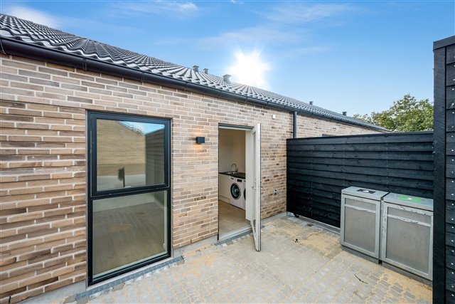Located in the 7200 Grindsted area, this newly constructed development by Fladenbund features 64 contemporary terraced houses ranging from two to five rooms. The homes are designed to balance comfort, quality, and practicality, making them suitable for families, couples, and seniors alike. Each residence is built on a single level, ensuring easy accessibility and a smooth flow throughout the living spaces.Every house is equipped with underfloor heating in all rooms, complemented by a balanced ventilation system that maintains a healthy and comfortable indoor environment year-round. The kitchens come fully fitted with modern appliances, ready for immediate use upon moving in. Constructed in line with current energy requirements and insulation standards, these homes offer low running costs. In addition, each property includes its own storage shed, providing extra space for belongings. Private terraces and gardens surround all residences, creating ideal areas for relaxation and socializing. Parking is available for two vehicles directly adjacent to each home, adding convenience to daily life. Pets are welcome following prior agreement, allowing you to keep your animals with you.