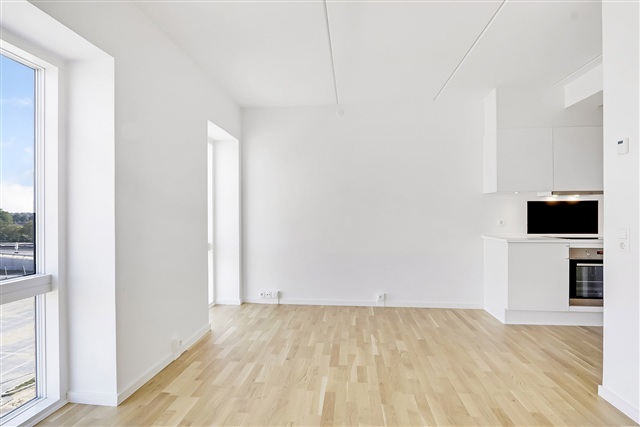 Set within the vibrant neighborhood of Gartnerbyen, Green-House offers a unique combination of community atmosphere and stunning panoramic views of Odense city. This residential development is nestled around a charming urban square, surrounded by a lively blend of boutique shops and housing, all while maintaining close proximity to the city center.This energy-efficient apartment is a contemporary two-room rental situated in a multi-storey building comprising 74 modern units. The interior showcases a Scandinavian design characterized by bright parquet flooring paired with white walls and ceilings, providing a neutral canvas for personal customization. Floor-to-ceiling windows flood the space with natural light, and every square meter has been thoughtfully designed to maximize functional living area. The apartment's central location within Gartnerbyen makes it an excellent residence for singles, young adults, and seniors seeking a secure and welcoming environment.