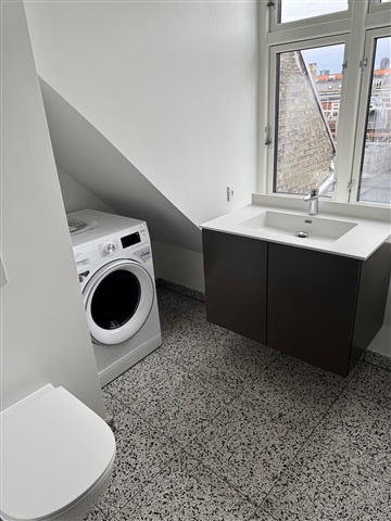 This charming penthouse apartment, newly constructed and situated in the tranquil Stenosgade in central Copenhagen, enjoys a prime location between Planetarium and Vesterbrogade. The residence benefits from abundant natural light and a layout that supports shared living arrangements, featuring a French balcony and direct access to a private rooftop terrace. From this outdoor space, spanning approximately 20 square meters, one can take in views of the Lakes, the New Theatre, and Tivoli.The apartment offers a unique blend of calmness, brightness, and vibrant urban life right outside the doorstep. Inside, the home is composed of an open kitchen connected to the living area, a bathroom, a separate toilet, and three enclosed bedrooms. High-quality materials are used throughout, and the unit includes all necessary appliances. The lease term is without any limitation, providing flexibility for the tenant.