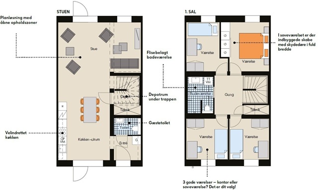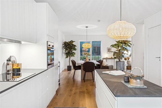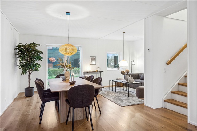 This attractive two-story townhouse is well-suited for family living. On the ground floor, you are greeted by an open-plan kitchen and dining area spacious enough to accommodate a large dining table. Adjacent to this, a bright living room extends out towards a lovely terrace and garden, offering views of surrounding green spaces. Near the main entrance, there is also a sizable terrace accompanied by a shed. The entrance hall features a built-in closet and space for outerwear, along with access to a guest toilet. Clever storage is integrated beneath the staircase, rounding out the functionality of the ground floor. Ascending to the first floor, you will find four bedrooms, including a generous master bedroom complete with a floor-to-ceiling wardrobe. The upper level also houses a well-appointed bathroom equipped with both a washing machine and a tumble dryer. Both floors benefit from underfloor heating, and the kitchen is fitted with HTH cabinets and Siemens appliances, providing a combination of style and practicality throughout the residence. Just outside, parking is available, and for electric vehicle owners, charging stations have been installed.