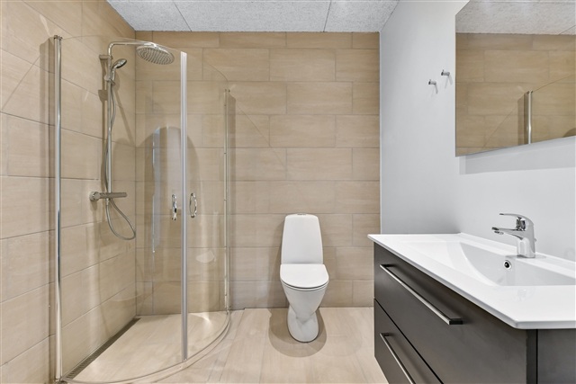 The home maintains a healthy indoor environment through ventilation combined with heat recovery. An energy-efficient air-to-water heat pump supplies cost-effective heating.
