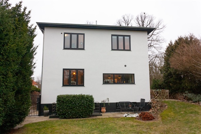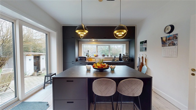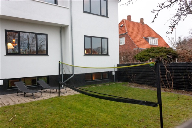 Nestled on one of Hellerup's tranquil and highly sought-after residential streets stands this elegant villa spanning 196 square meters, where timeless architectural design blends seamlessly with contemporary luxury and thoughtfully crafted details. The property is ready for immediate occupancy and showcases a refined choice of materials, abundant natural light, and a floor plan meticulously designed to accommodate both family life and formal entertaining.This residence comprises five bedrooms and two bathrooms distributed over multiple well-utilized levels. Upon entering the ground floor, the sense of sophistication is immediately apparent. The large, sleek kitchen offers generous countertop and storage space, serving as a central hub for everyday living and social gatherings. The kitchen flows openly into two adjoining living rooms, each featuring expansive windows that flood the interiors with light, creating an inviting and stylish ambiance. Additionally, this level includes a versatile room suited for use as a study, library, or an extra bedroom.
