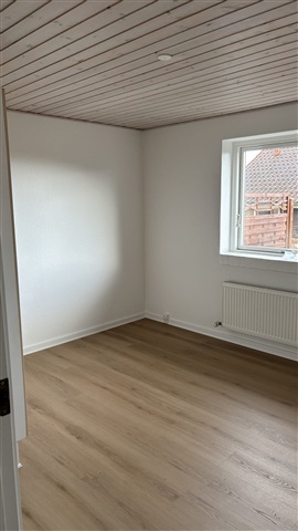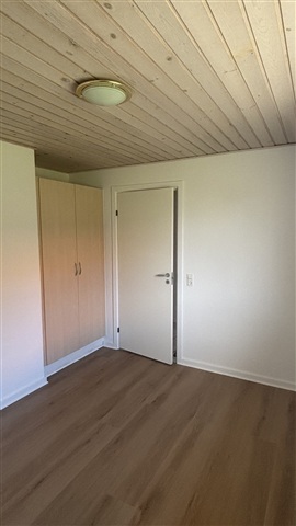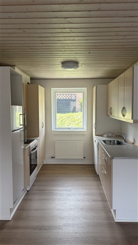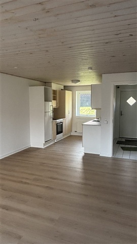 This attractive single-level townhouse, constructed in 2004, offers 73 square meters of living space and is located in V. Aaby. The layout includes an entryway, an open-concept kitchen connected to the living room, a spacious bathroom, and two bedrooms, one of which features built-in wardrobes.Recently, new flooring has been installed throughout the living area, kitchen, and bedrooms. The kitchen comes equipped with a combined refrigerator and freezer, a cooker hood, and a stove.