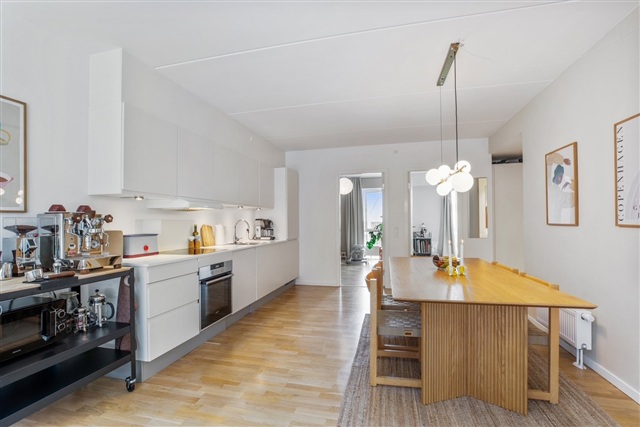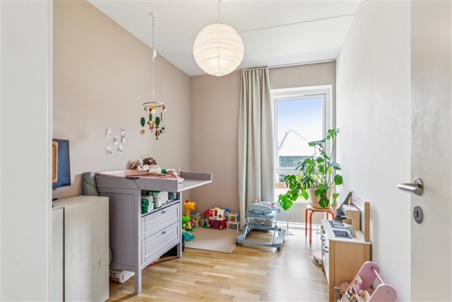 This bright and appealing three-room apartment spans 90 m² and is situated in a stylish building from 2017, featuring an elevator, a green courtyard, and two inviting communal rooftop terraces. The residence offers a generous entrance hall equipped with a built-in wardrobe, leading into a spacious and welcoming living area where the living room and kitchen seamlessly merge in an open-plan design. The sleek, white kitchen is outfitted with all modern appliances. From the living room, one can step directly onto the large west-facing balcony, ideal for both relaxation and enjoyable summer evenings.Inside, the apartment comprises three well-sized bedrooms, along with a modern shower bathroom that includes a washing machine and dryer stack. The property is attractively located near the charming author's quarter in Valby and is within a short distance of Copenhagen South Station, providing access to train, metro, and S-train services. Additionally, Valby Center is easily reached, offering excellent shopping, dining options, and cozy cafés. Utility expenses are paid separately from the rent.