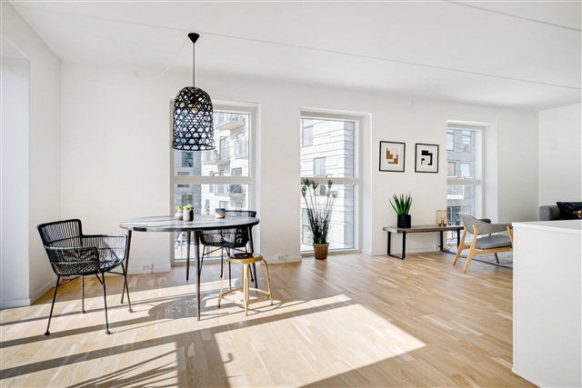 Situated in the Kanalvejshusene development in the core of Kgs. Lyngby, this location offers convenient walking access to Lyngby's main street, Lyngby Storcenter, and Magasin, providing plentiful shopping and retail options. Just opposite the property are expansive green spaces that invite outdoor activities and play.