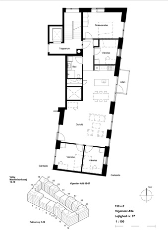 This spacious 138-square-meter apartment on Vigerslev Allé in Valby features five rooms, offering ample versatility for a variety of living arrangements. The monthly rent is 24,950 DKK, with a deposit and prepaid rent each amounting to 74,850 DKK. The rental term is flexible and can be arranged directly with the landlord, making it suitable for long-term residency.Valby itself is a vibrant neighborhood blending diverse housing options with convenient amenities. The area around Vigerslev Allé presents a mix of tranquil residential streets alongside easy access to urban life. Within a five-kilometer radius, residents can reach numerous educational institutions including the Hotel and Restaurant School, Roskilde Technical School at Vigerslev Allé, HTX Gastro Science, and NEXT – Sukkertoppen Gymnasium. Additionally, nearby campuses such as NEXT Education Copenhagen, the Danish Army Officer School, Copenhagen University College at Diakonissestiftelsen, Aalborg University Copenhagen, and CBS PhD School make this locale ideal for students or professionals connected to academia.