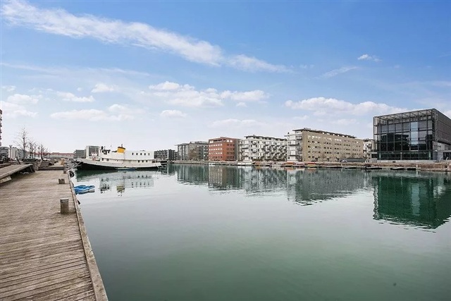 A bright, fully furnished apartment is available for rent in the tranquil and picturesque area of Sluseholmen. This residence comes completely equipped with all essentials, including curtains, a wardrobe, a bed, household appliances, garden furniture, and high-speed internet, which is covered by the rent.The apartment boasts ample natural light and an attractive setting with views overlooking the canal. The living room and bedroom both offer picturesque sights of Sluseholmen's charming harbor surroundings, while the kitchen and dining area provide direct access to a terrace facing the well-maintained communal garden.