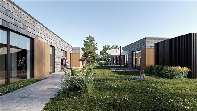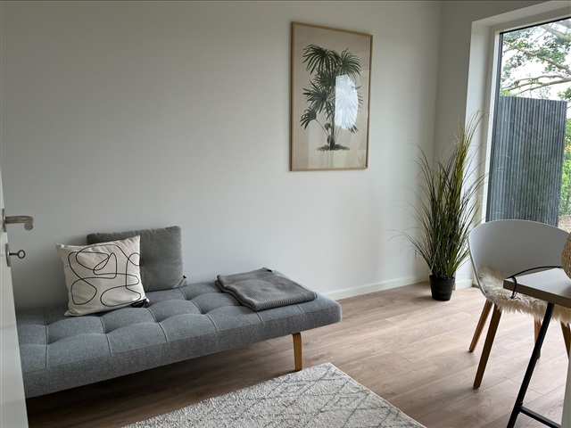 These attractive single-story terraced houses are situated in a tranquil location next to open fields in Helsinge. Residents will enjoy living adjacent to a scenic natural environment while still having convenient access to grocery stores and other urban amenities, all reachable within a short bike ride.The development showcases modern architectural design with a highly efficient use of space, eliminating any unnecessary areas. Each bedroom is equipped with built-in wardrobes for practical storage.