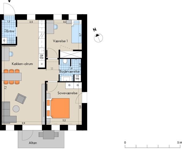 The kitchen and living area are designed with an open layout that comfortably accommodates a dining table, a sofa section, and a workspace, while abundant natural light streaming in from two directions enhances the spacious atmosphere. Your balcony faces southwest, offering the perfect spot to enjoy the evening sun. This apartment includes two rooms: one features built-in wardrobes, and the other is well suited for use as a child's bedroom or a home office. The generously sized bathroom comes equipped with a combined washer and dryer. The entire interior is decorated in classic tones, providing a neutral backdrop that makes it easy to personalize the space.The building is equipped with an elevator, and the apartment includes a storage room located in the basement. For bicycles, there are designated outdoor parking areas, and ample car parking spaces are available nearby. Several of these parking spots are fitted with shared charging stations for electric vehicles. Please note that the images provided do not depict this particular apartment, so features such as the view and room layout may differ. The photos serve as examples only, and final dimensions and arrangements should be referred to on the floor plan. Additionally, the interior furnishings shown in the pictures have been generated by AI, and the bathroom image is a digital rendering.