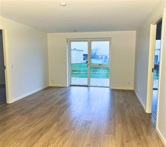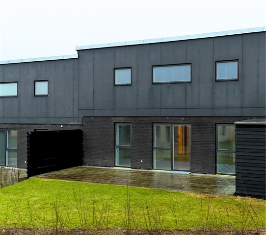 This exceptionally contemporary and thoughtfully designed terraced house features an entrance area with a utility room, a bright kitchen seamlessly connected to the dining space, and a cozy seating nook. The open-plan living area provides access to two separate terraces located on opposite sides of the property. In addition, the residence offers two spacious bedrooms, a master bedroom equipped with a built-in wardrobe wall, and a generously sized bathroom. The property includes a private garden and comes with a dedicated storage shed measuring 7 square meters, as well as parking facilities comprising two spaces-one of which is covered by a carport.The entire home is characterized by its light and open atmosphere, enhanced by large windows and glass sections that allow for abundant natural light throughout. The interior walls and ceilings are painted in smooth white, complementing the bright appearance. Laminated flooring in a light oak plank style covers the kitchen, dining, living room, and bedrooms, while the entrance, utility area, bathroom, and shower feature large, elegant dark gray tiles. All doors are finished with a sleek white surface, outfitted with stainless steel handles, and designed without thresholds to ensure easy access. Window sills are built with a white masonry finish, and the baseboards are also smooth white, providing a polished transition from floor to wall.