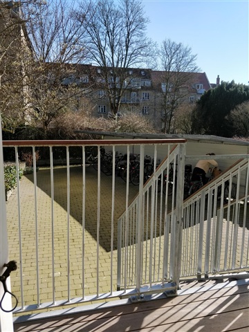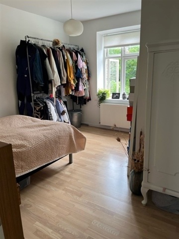 This attractive apartment features two comfortable bedrooms alongside a spacious living room illuminated by large windows that allow ample natural light to fill the space. The separate kitchen is equipped with a refrigerator/freezer, a built-in oven, a cooktop, and a range hood. From here, you can step out onto a pleasant balcony that includes a staircase leading down to the charming communal courtyard. Upon entering, there is a generous hallway, and the bathroom is efficiently arranged with a shower niche. Please note, the photographs provided are of a similar apartment within the same building.Residents benefit from shared facilities in the property, including a communal laundry room, bicycle storage, and additional storage options. The inviting courtyard is also accessible for all tenants to enjoy. The apartment's location in Trøjborg places it close to cozy cafés, shops, and convenient grocery options, while nature is just moments away-whether heading to Riis Skov forest or the beach areas at Bellevue and Den Permanente.