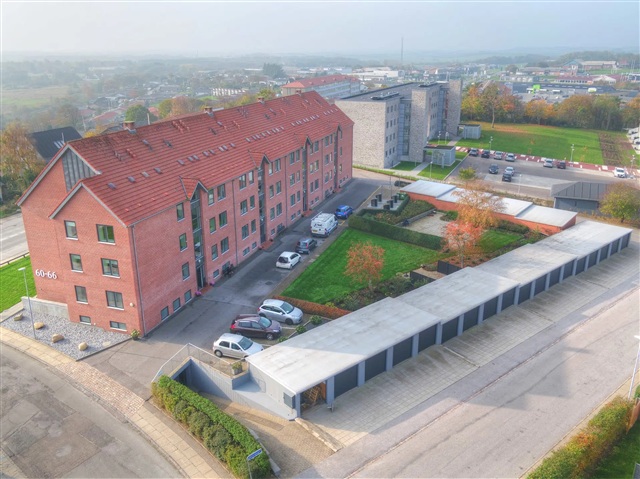 Holstebrovej is situated in the western part of the town center, offering convenient access to the city's ring roads, shopping facilities, and Skive's central area.The complex, comprising two residential blocks each with three floors, is primarily designated for residents aged 50 and above who do not have children living at home; however, this restriction does not apply to the apartments on the third floor. Constructed in 1952, the buildings have undergone continuous renovation, including the installation of new kitchens and bathrooms in 1999. Further enhancements in 2015 included new window installations, upgraded masonry with added insulation, and the addition of balconies that can be used either as open or enclosed spaces. Several units feature newly installed white interior doors, and for those apartments where this update has not yet been made, new interior doors can be fitted for a modest rent increase if desired.