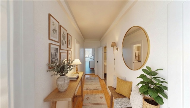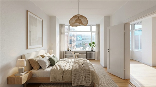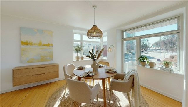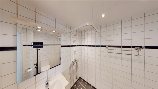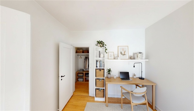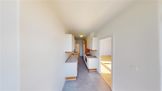 The apartment features a well-designed kitchen that can accommodate a dining table if desired. It is equipped with a large fridge-freezer and offers ample cabinet space for all cooking utensils. The bathroom is bright and well-maintained, including storage under the sink and a separate shower enclosure. The living room provides enough space for both a dining area and a seating arrangement. From here, there is direct access to the apartment's spacious balcony, perfect for enjoying warm summer evenings. The three bedrooms are bright and welcoming, and several of them have direct exits to the balcony.