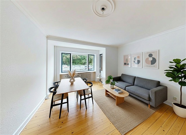 This charming two-room apartment is situated close to Aalborg city center, offering a lovely view of the scenic Østre Anlæg park. It could be the perfect candidate for your next home.Upon entering, you step into a compact hallway that leads into a distribution corridor, providing access to all other rooms in the apartment. The living room is spacious and bright, featuring large beautiful windows that frame a picturesque view of Østre Anlæg below. Additionally, this room grants direct access to one of the apartment's three balconies, where you can savor warm summer evenings. The bedroom comfortably accommodates a large double bed, a sizable wardrobe, and possibly even a desk for a small home office. From the bedroom, there is also direct access to a second balcony overlooking the spacious communal backyard. The bathroom is light and well-maintained, and the kitchen shares the same bright, pleasant atmosphere.