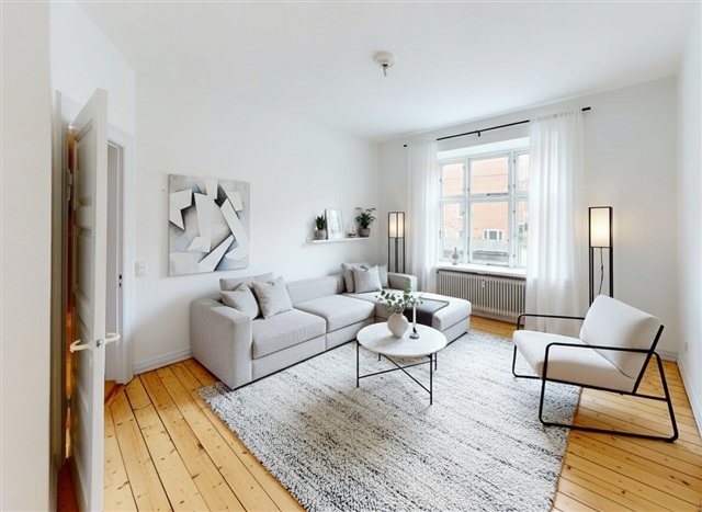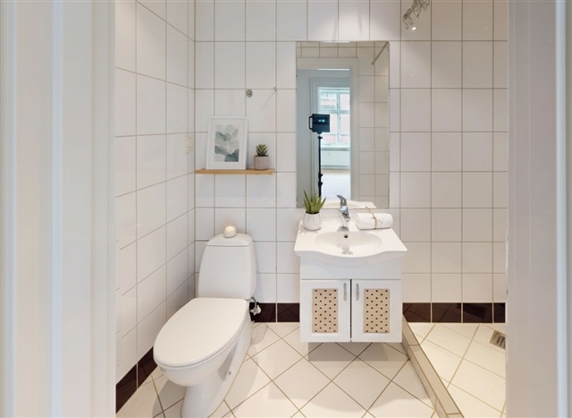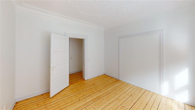 The apartment features a bright kitchen overlooking the charming courtyard area. The bathroom also benefits from ample natural light and includes storage beneath the sink as well as a separate shower enclosure. Within the unit, there are three spacious and well-lit rooms. One of these is ideal for use as a large living room, providing plenty of space for both a sofa set and a dining table, while the other two make excellent sizable bedrooms, offering more than enough room to accommodate a large double bed, a desk, and a wardrobe.
