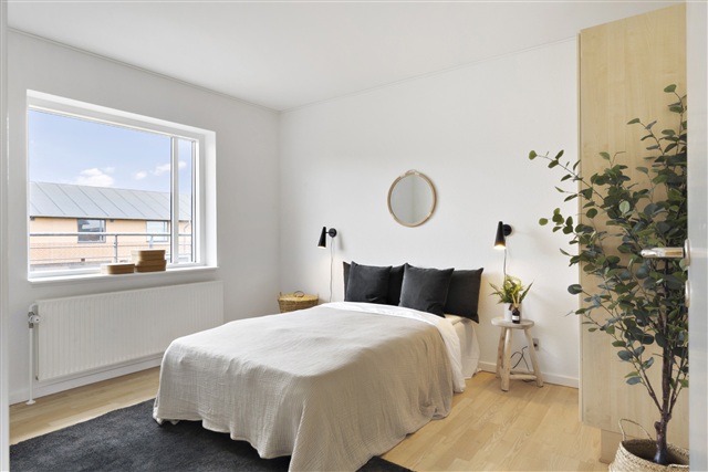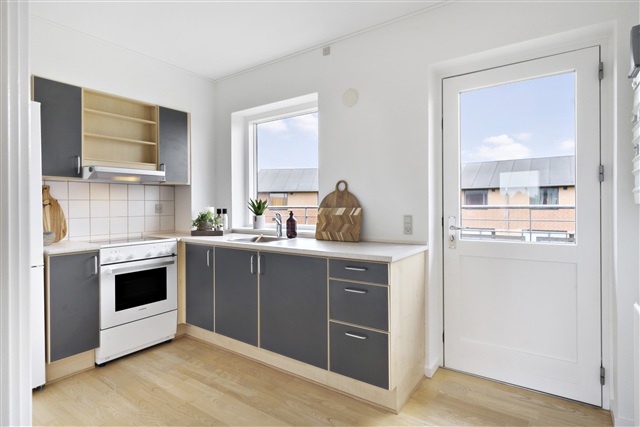 Convenience is a key aspect of this location, with major retailers such as Bilka, Netto, Bauhaus, Elgiganten, and Jysk in close proximity. Public transportation options are easily accessible, and for those with vehicles, the motorway is readily reachable.