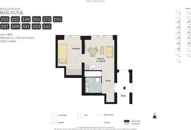 At Rødovre Port, a contemporary newly constructed residential complex, this well-planned two-room apartment offers 43 square meters of thoughtfully designed living space within a highly sought-after neighborhood. The apartment is ready for immediate occupancy, featuring modern amenities, quality finishes, and abundant natural light throughout.The living area is open-concept, incorporating a kitchen crafted with timeless style. Essential appliances such as a microwave, stovetop, and refrigerator with freezer compartment are included, ensuring functionality for everyday cooking. The bedroom provides ample space, while both main rooms are equipped with large windows that flood the interiors with daylight, creating an airy and bright environment. The bathroom is generously sized, adding to the overall sense of space.
