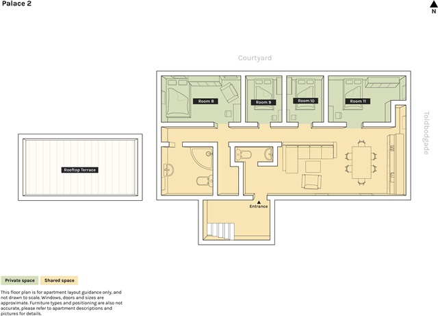 The dwelling consists of what are officially two distinct apartments, yet they function as a single unit. On the ground level, the larger apartment comprises seven rooms in total: one designated for couples and six intended as singles' rooms. Upstairs, the smaller apartment includes four rooms altogether, featuring one couples' room and three singles' rooms. The impression of a unified residence arises from the fact that both apartments essentially share their own private entrance hallway.Within the first-floor layout, there is an expansive dining area seamlessly integrated with an open-plan kitchen, serving as the central space for Sunday meals and social gatherings. Additionally, this level boasts two bathrooms and one separate toilet. Toward the rear of this apartment lies a comfortable living room, ideal for enjoying movie evenings. Moving to the second floor, the space is more intimate, fostering a cozy and inviting ambiance. This floor includes a spacious bathroom and another toilet. The kitchen here is open and features a round dining table accommodating around eight people, with a snug living corner included in the same area. Furthermore, a charming terrace belonging to this LifeX apartment is located atop the neighboring building's highest floor, providing outdoor space suitable for roughly ten individuals.