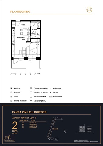 Viften, 54 m2, 2 rooms, 9,900 kr.