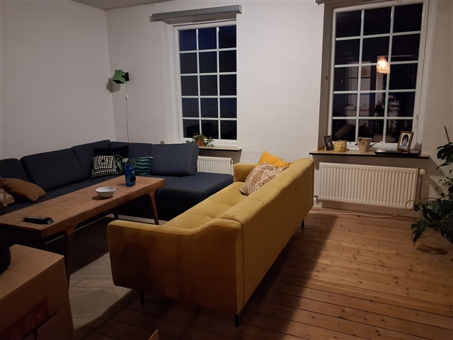 In a villa at Herregård, a 127 m2 apartment on the ground floor with a wood-burning stove, garden and cellar is for rent.Scenic and quiet park area only 10 km from Aalborg city center. 2 bedrooms and a closet, living room, dining room, kitchen and bathroom.