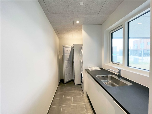 Mejdalbo has this 120 m2 townhouse located on Alstrup Søsti. The townhouse is located right down to Alstrup Sø, which is close to shopping, school and Idrætscenter Vest, grocery store is a 365. In addition, it is also close to the hilly forest and nature area Sir Lyngbjerg.If you would like to live in a beautiful, newly built home, take a closer look here. The rental has a beautiful living room and kitchen/dining room, both with views over Alstrup Sø. In addition, there is a bedroom, 2 bathrooms, 2 rooms, utility room and hallway. The house has a large terrace, where there is sun from all corners of the world. There is also a carport with insulated tool room, and extra parking space.
