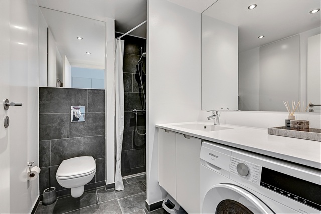 Situated just a few kilometers from the center of Aarhus, this well-designed apartment is located in a popular, modern building in Åbyen. The green spaces nestled between the buildings create a cohesive environment and provide extensive opportunities for outdoor activities within a large communal area. Inside, the apartment features a bright and attractive kitchen equipped with a dishwasher. This kitchen opens directly into a pleasant living room that leads out onto a spacious balcony. The bedroom offers ample storage thanks to built-in wardrobes, while the bathroom is stylishly fitted and includes a combined washer and dryer. Throughout the apartment, elegant parquet flooring enhances the overall aesthetic.The property itself offers excellent shared amenities along with a beautifully maintained green space in its surroundings. Conveniently, a Netto supermarket is located on the ground floor of the building, making grocery shopping easily accessible. Tenants are responsible for paying electricity, water, and heating directly to the utility companies. Use of the apartment as a shared unit between two friends is not permitted, and pets are strictly prohibited. Additionally, rental applications from individuals listed in the RKI credit database will not be accepted. Please note that the accompanying image depicts a similar apartment within the same building.