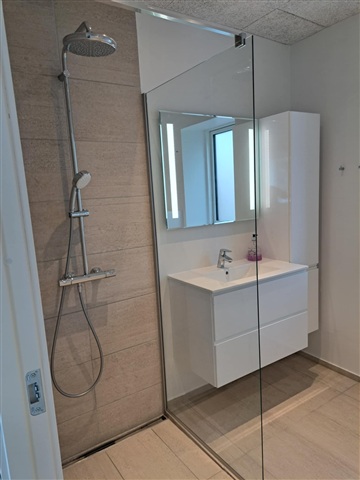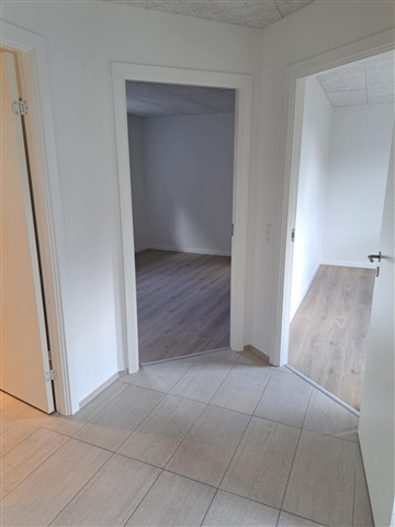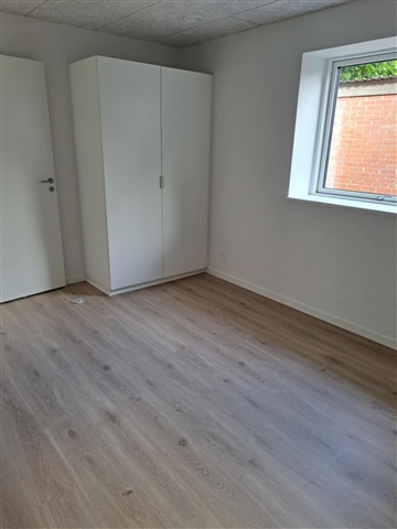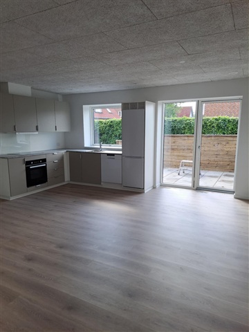 Accommodation for rent right in the middle of Askov with a short distance to both school and shopping, in a house slightly set back from the main street.The house is completely newly renovated, has 5 rooms, large bathroom in modern colors, toilet on the 1st floor and kitchen/dining room with access to its own large terrace.
