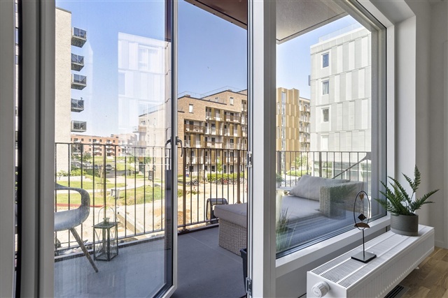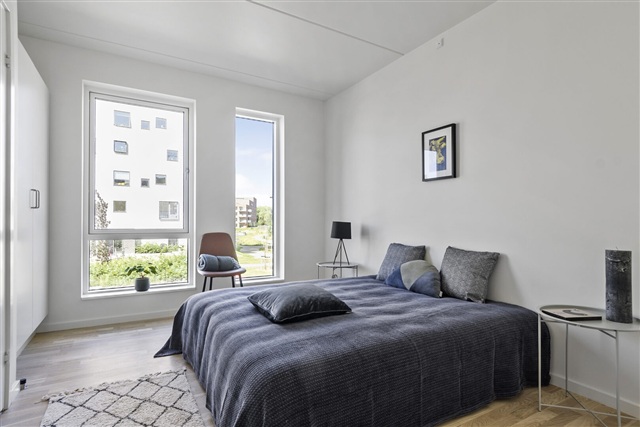 Additionally, every apartment contains a storage room within the unit. The building is constructed with a focus on quality and comfort, and residents of Åbyen enjoy access to a beautifully landscaped park area. This green space includes a newly created lake that gently guides the community members through the neighborhood.