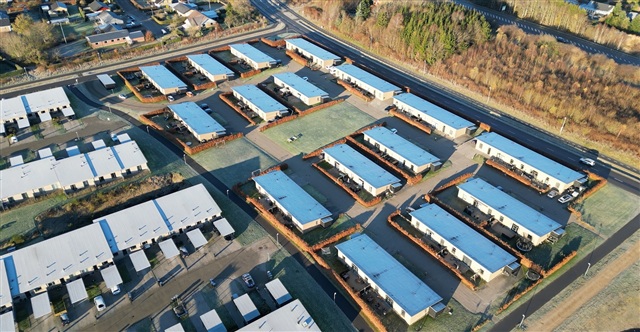 Funder Skovparken consists of 32 one-story terraced houses built between 2014 and 2016. These homes are set on a closed cul-de-sac surrounded by green areas and feature single-sloped roofs designed to maximize sunlight exposure from the south-facing garden and terrace. The construction employs low-maintenance materials to ensure durability and ease of upkeep.
