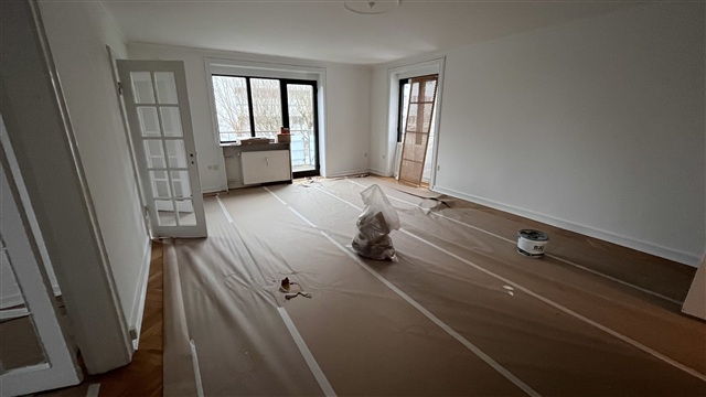 The apartment is located on the border of Hellerup / Østerbro and contains:Entrance with guest toilet, 3 bedrooms with French balcony, large bathroom with sink, large dining room and living room with access to balcony. Newer kitchen, access to basement and possibility to rent a parking space in the basement (DKK 750,-)