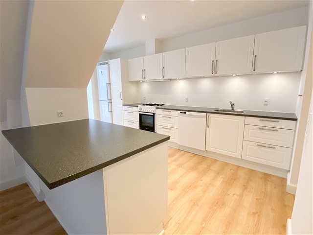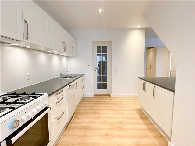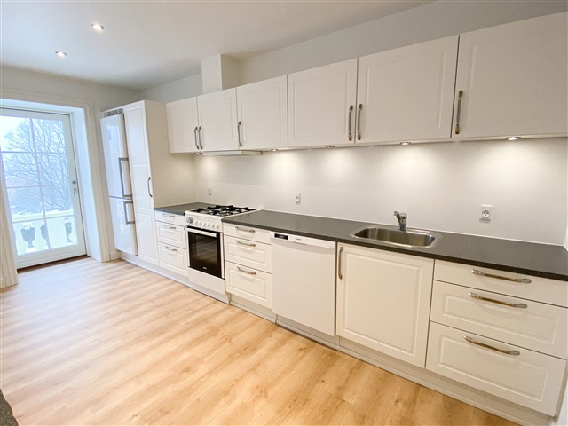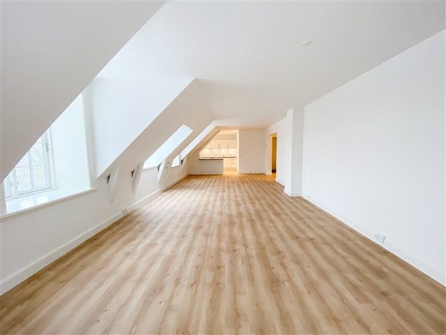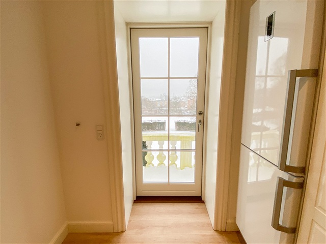 Positioned on the bright and airy second floor, this apartment offers a serene retreat in the heart of the city, complemented by charming views of the sky and treetops that evolve with the seasons. Natural light plays a pivotal role throughout the home, beautifully accentuating the light-colored furnishings. The white walls paired with well-maintained flooring establish a timeless backdrop for everyday life, which especially unfolds around the spacious kitchen-dining area. This space invites gatherings for meals, shared cooking experiences, and the enjoyment of the evening sun streaming through double terrace doors that lead to a west-facing balcony.The generously sized bedroom also provides access to this balcony, while an additional room and a second balcony add further space and versatility. The layout is completed by a welcoming entrance hallway with built-in storage, convenient access to the utility room, a large bathroom, and a separate guest toilet-offering thoughtful and practical living throughout.