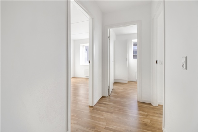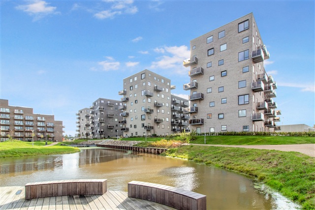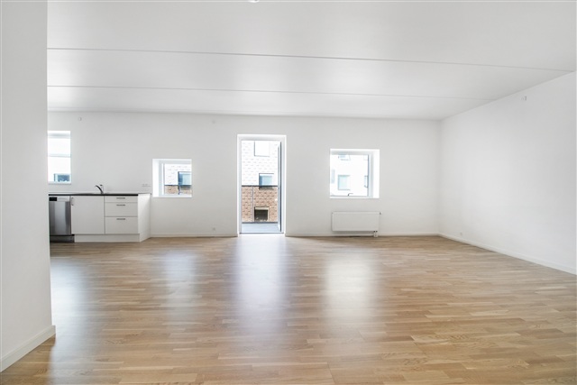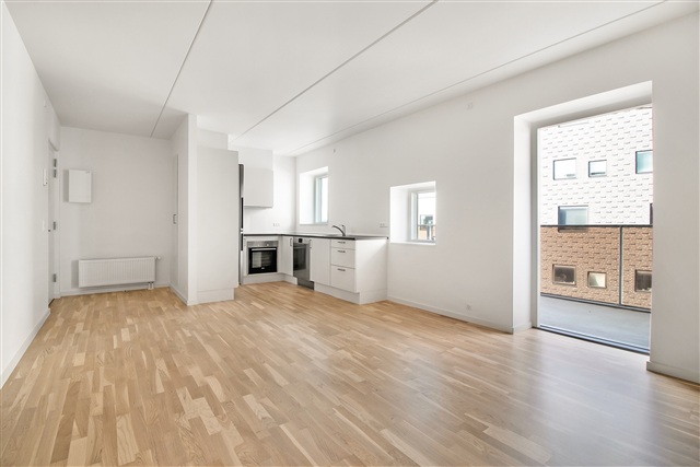 The overall layout emphasizes brightness and spaciousness. Windows are thoughtfully positioned to offer residents optimal views of the attractive green surroundings as well as towards the city. The balconies of the building are arranged to avoid casting shadows on one another while still ensuring a high degree of privacy for each resident. A communal green space lies between the buildings, creating a cohesive environment with ample room for various activities. Additionally, Åbyskolen is conveniently located just around the corner.These well-designed four-room apartments feature a living area that seamlessly connects to the kitchen and dining space. They are also suitable for sharing, which is particularly beneficial for students. The apartments are naturally filled with light and include a large balcony providing stunning views of the city skyline and nearby natural areas. Each unit comes equipped with its own washing machine and tumble dryer in the bathroom, and residents have access to a storage room in the basement.