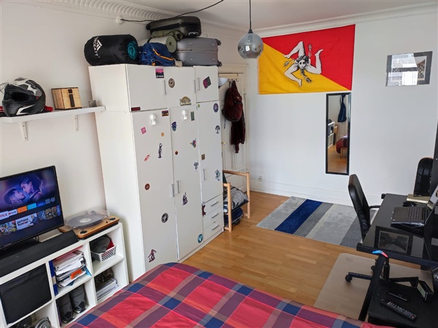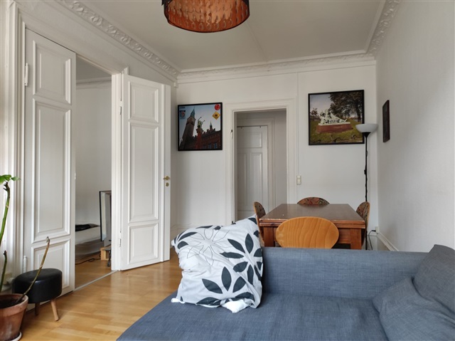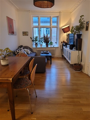 Welcome to your new home right in the heart of Copenhagen! This charming and bright room is located on Vesterbrogade – one of the absolute best addresses in the city. You will find everything you want in the area, including nice bars, restaurants, shops etc.. - Central station and metro - 450 m - Radhusplads - 700 m - Lakes - 200 m - Meatpacking District - 400 m The apartment consists of 2 more bedrooms, a kitchen with dishwasher and all you can possibly need to cook. There is a large and bright living room with a dining table, a couch and a TV where you can chill. The bathroom is recently renovated and equipped with a washing machine. The building is connected to an internal courtyard where you can park your bike safely since it is accessible only by tenants. There is also space in the attic if you need any extra storage. We are friendly, easygoing, and respectful and we'd like to find someone with the same positive and relaxed vibe.The room is filled with natural light thanks to a large window overlooking the rooftops, creating a calm and cozy atmosphere. It comes fully furnished with a comfortable double bed, spacious wardrobe, desk for working or studying, and plenty of storage. The layout makes great use of the space, so it feels both practical and homey.