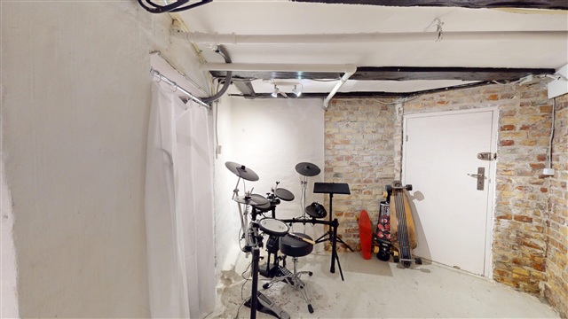 This spacious and distinctive two-room apartment offers a unique charm and a wide array of interior design possibilities. Its history as a former commercial space imparts an exceptional character, featuring generous open areas, abundant natural light, and a flair that diverges from typical residential layouts.At the core of the home lies a large, welcoming living room bathed in light. The room provides ample space to arrange a comfortable seating area, a television setup, and cozy nooks for relaxation. A staircase descends directly from the living room to the basement, creating a seamless connection between floors and lending the dwelling a townhouse-like ambiance. The floor plan presents numerous opportunities to personalize the space and make full use of the square meters available.