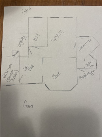 The apartment has three bedrooms, a laundry room, a small tool room and a "walk in closet". The apartment has large, bright rooms with few doors, which makes it not the ideal shared apartment. There is a large eat-in kitchen and a large bathroom.