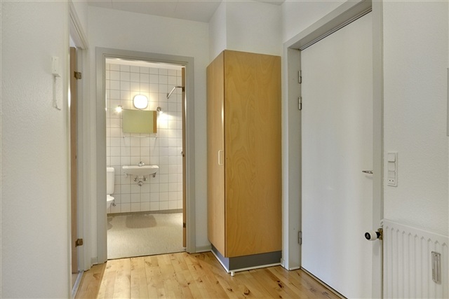 The residences known as Byhusene are situated throughout Rødekro and offer appealing outdoor spaces for their inhabitants.One of the key buildings is located on Vestergade and features a three-story structure housing apartments on the first and second floors, while retail establishments occupy the ground level. These units are bright and welcoming, characterized by beautiful hardwood flooring and built-in wardrobes in the bedrooms. The kitchens come equipped with a refrigerator-freezer, stove, and extractor hood. While some apartments have updated kitchens with light-colored cabinetry, others retain their original veneered door fronts. Each dwelling benefits from access to an external corridor, providing enough space to accommodate a small table and chairs directly outside the front door. Additionally, every apartment includes a storage room situated in the basement.