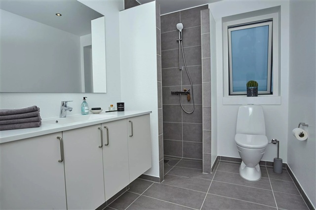 This residence provides an ideal setting for families with children or couples who appreciate tranquil surroundings near Odense. For those seeking a home amid lush greenery, a village atmosphere, and complete quiet, the semi-detached houses at Tave Bonden offer an excellent option. These rental properties are constructed in a contemporary and minimalist design and are situated on a private cul-de-sac, where nature lies just beyond your doorstep.Situated in Langeskov, the well-maintained dwelling features an open kitchen and dining area fitted with cabinetry from HTH. The kitchen comes fully equipped with a dishwasher, ceramic stove, and built-in oven, while the living room is brightened by large windows allowing ample natural light to fill the space. Accommodation includes one bedroom along with two additional rooms that can serve various purposes such as a home office, children's rooms, or guest bedrooms. All rooms are finished with laminate flooring, and the bathroom is tiled with large anthracite gray tiles.