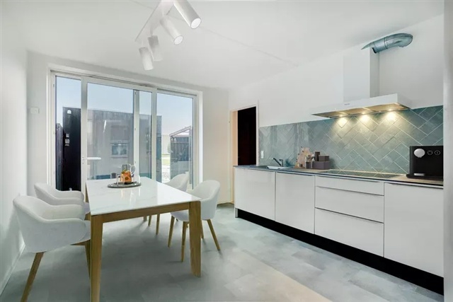 This bright and contemporary terraced house offers a well-planned living space of 143 square meters distributed across five spacious rooms. Designed with modern architectural elements and practical solutions, it provides an ideal environment for families seeking both roominess and comfort.The residence's centerpiece is an open-concept living area seamlessly connected to the kitchen and dining space. Large windows flood the interior with natural light, enhancing the connection between indoor and outdoor living. The kitchen features a sleek, minimalist design equipped with ample countertop space and a full range of built-in appliances.