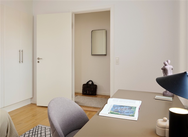 Situated in the cozy residential area of Klosterparken, the apartment benefits from a family-friendly environment renowned for its extensive green spaces and a variety of outdoor facilities that encourage an active lifestyle. Children have access to four playgrounds, including a large and popular pirate-themed play area frequented even by external visitors such as kindergartens. The neighborhood also features a multi-purpose sports court, a petanque court, and a 25-meter swimming pool staffed with lifeguards.