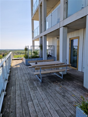 Located within the newly developed and sought-after area of Rødovre Port, this 33 m² studio apartment offers a contemporary and move-in ready living space featuring thoughtful design and high-quality materials. The unit presents an open-plan living area combined with a kitchen outfitted in a timeless style, inclusive of essential appliances such as a microwave, cooktop, and fridge-freezer, catering well to everyday cooking as well as social gatherings.The room benefits from large window sections, allowing ample natural light to fill the space and creating an inviting atmosphere. This versatile area can accommodate a bed, storage furniture, and a cozy dining setup. Additionally, a spacious balcony extends the living area outdoors, perfect for enjoying pleasant weather.
