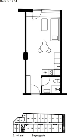Strynøgade, 36 m2, 1 rooms, 9,500 kr.