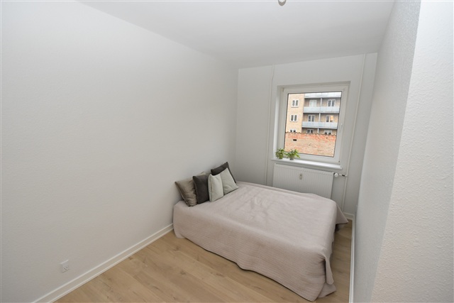 This apartment, located in Aalborg, combines abundant natural light with high-quality finishes in an appealing setting. The residence is ready for immediate occupancy and offers a comfortable ambiance throughout.Upon entering, a spacious hallway provides convenient access to all rooms. The living room is generously sized and benefits from ample daylight streaming through large windows. The bedroom is bright and relatively large, enhanced by newly installed flooring that brings a contemporary feel to the space.
