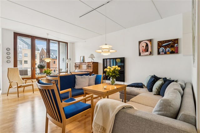 This well-maintained three-room apartment is located in the charming neighborhood of Christianshavn, offering picturesque views over the canals. Situated in a modern building constructed in 2003, the residence features a practical layout and includes two balconies, one of which overlooks the water. Despite being just a short walk from Torvegade and the vibrant local life of Christianshavn, the apartment enjoys a peaceful setting. Inside, you will find a spacious entrance hall leading into the living room, which boasts beautiful views and direct access to the waterfront-facing balcony. Additionally, the unit contains a cozy kitchen, two comfortable bedrooms, two bathrooms each equipped with showers, and a storage room.Residents have the option to rent a parking space in the building's basement. There are also communal facilities such as a party room, a resident guest apartment for overnight visitors, and a lovely courtyard ideal for children to play in. The location is truly excellent, with the canal and moored boats as immediate neighbors. The unique atmosphere of Christianshavn can be experienced on every street corner, especially while strolling along the cobblestone Wildersgade, past historic houses, and by the water and ramparts. The Inner City is easily accessible by bike, and with the metro station located only 550 meters from the front door, the entire city is conveniently within reach.