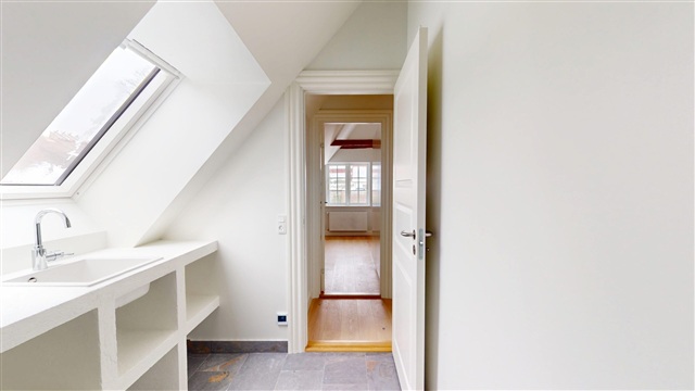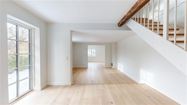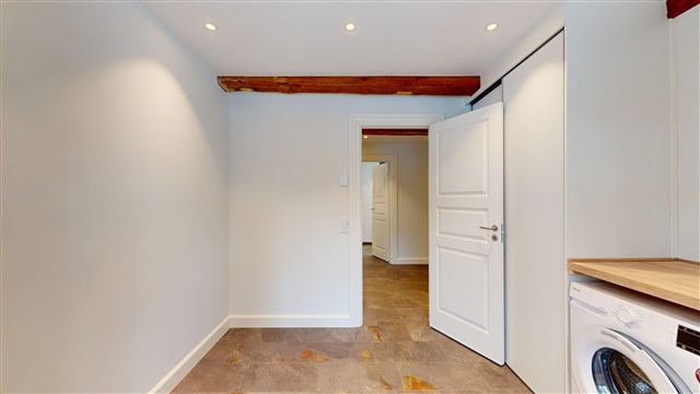 Located on Sandbjergvej in Hørsholm, this completely renovated townhouse spans two levels where style, functionality, and modern convenience come together seamlessly. The residence is presented in impeccable move-in condition, crafted to meet the demands of both family life and occasions that call for an elegant setting.Upon arrival, the quality of this home is immediately apparent. The spacious entrance hall offers generous room for storage and coats, serving as a practical distribution space. From here, you gain access to the first-floor sophisticated bathroom as well as a large, highly functional utility room equipped with both a washing machine and dryer. This utility area caters to everyday practicalities without compromising on space or discreet design.