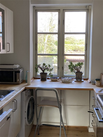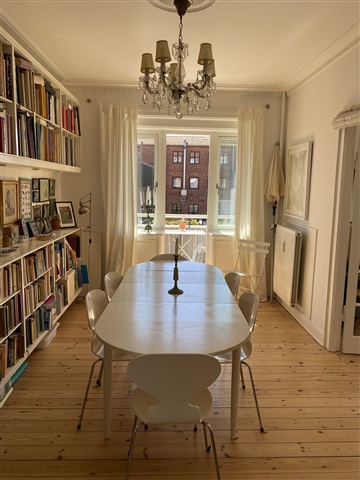 Charming 3-room appartement, 88 m2, balcony with sea-view, you will ALMOST get it all for yourself.You will get a large, quiet bedroom as your privat space and rest of the appartment is alle yours when you're not at work. The concept is unusual: You will lend my home for nonprofit price, and I will a few days a week use the living room during daytime (for writing), but since you are at work we will in praxis never see eachother and you will have the whole flat for your self far most of the time, I am never there, during mornings, evenings, weekends or school-holidays.