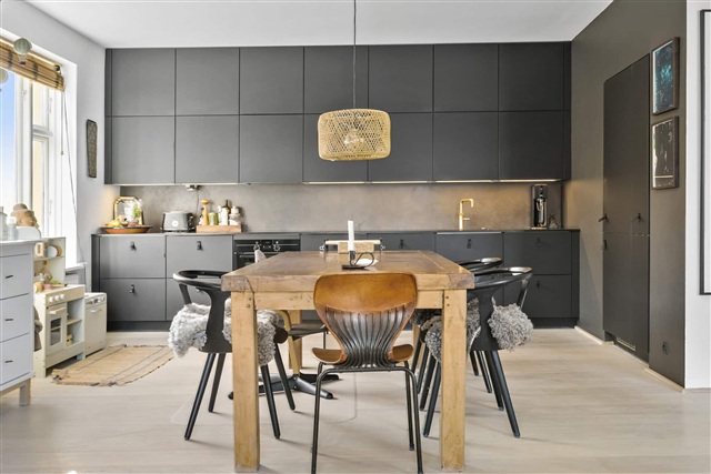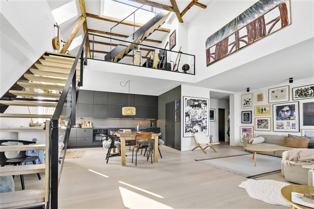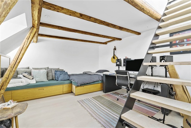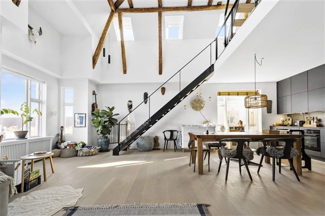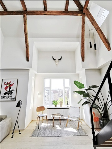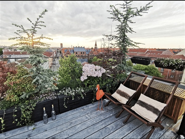 Located in the vibrant heart of Copenhagen's "Latin Quarter" on Meinungsgade in Nørrebro, this exceptional penthouse apartment offers an unbeatable address. Boasting a private rooftop terrace spanning 30 square meters, the space provides sweeping views over the city's rooftops. This outdoor haven features both a garden area and a kitchen setup, creating a tranquil retreat in the middle of urban life. Recently renovated, the apartment comprises an entrance hall, a bedroom, a bathroom, and a spacious open-plan kitchen and living area characterized by vaulted ceilings with exposed beams.From the ground level, a staircase leads up to the first floor, which can serve as an additional bedroom or a home office. The rooftop terrace is also accessible via a staircase on this upper level. Situated in one of Nørrebro's most sought-after neighborhoods, the location is not only charming but also highly convenient, with grocery stores, restaurants, cafes, and the Empire Bio cinema just around the corner. Public transportation, including the Metro, is easily reachable on foot, making commuting straightforward.