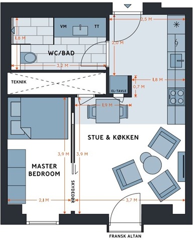 - Prepaid utilities: Water + Heating – DKK 750/month (annually adjusted)